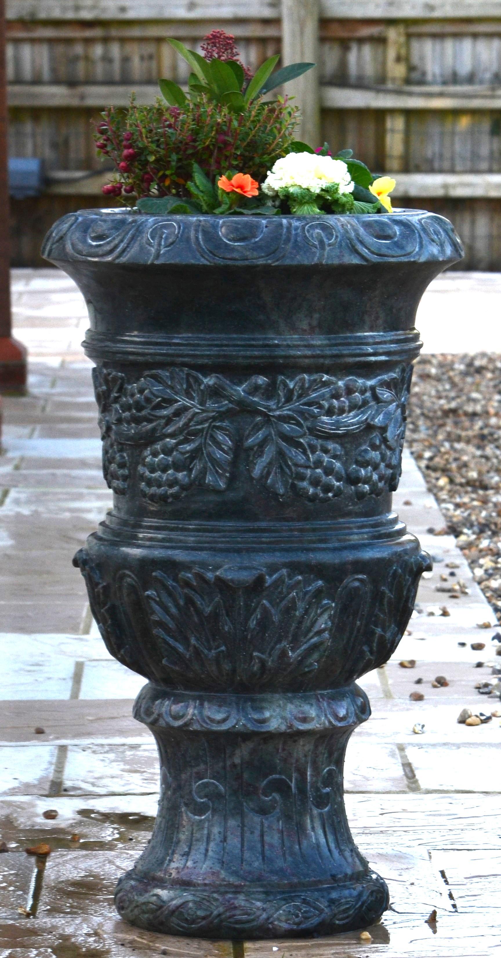 Our Ornate granite planter shows Victorian elegance combined with modern durability. The exceptionally finished carving paired with the non polished Green granite gives a subtle and sophisticated appearance. The planter has been carved from one single block of granite.