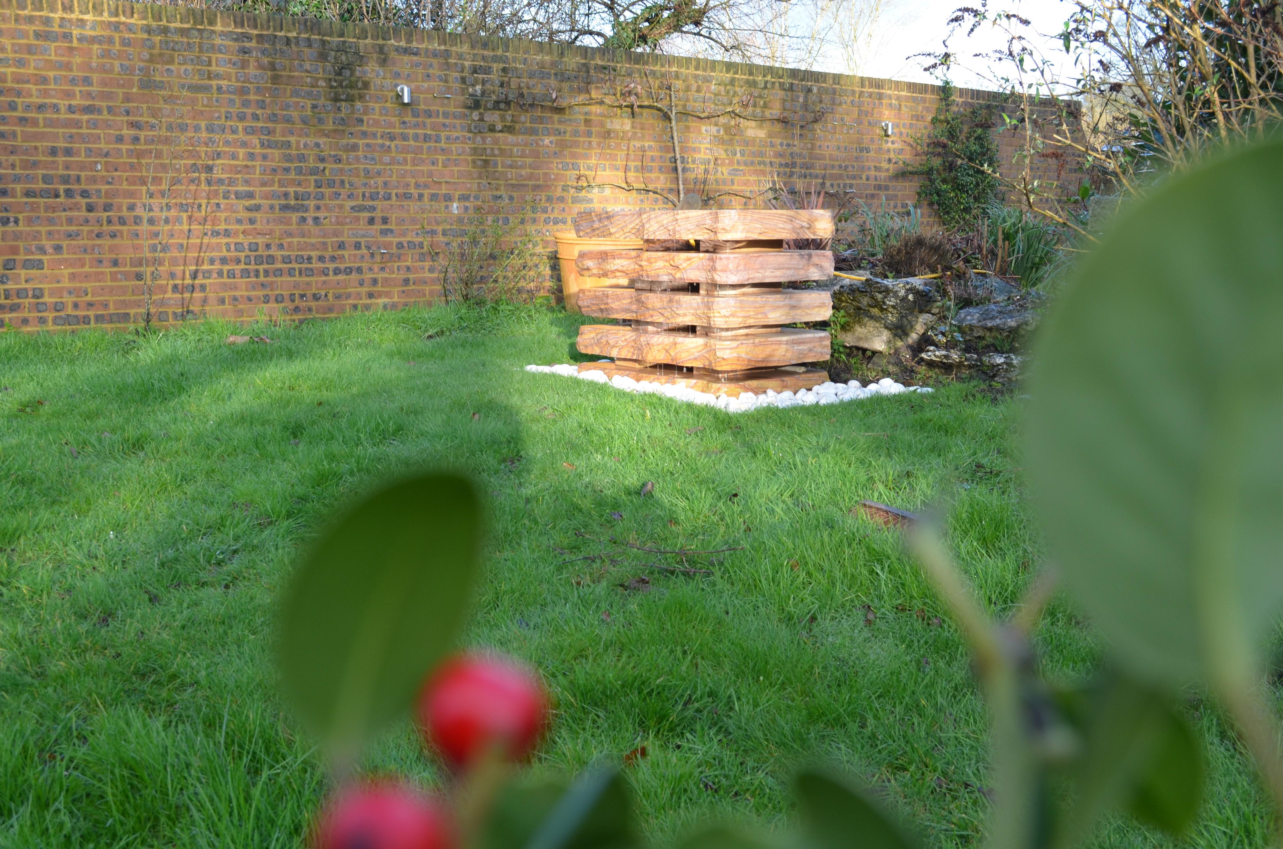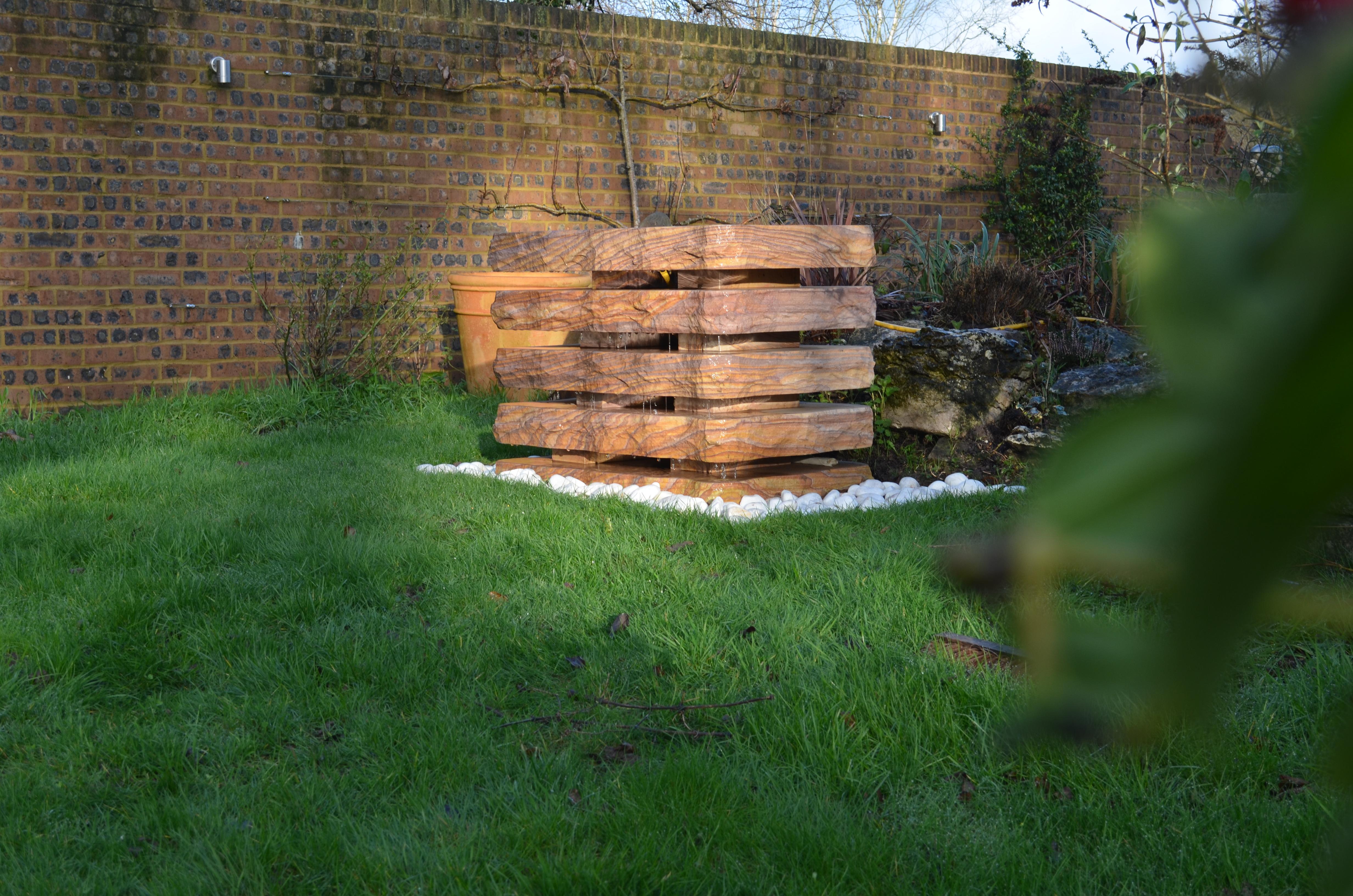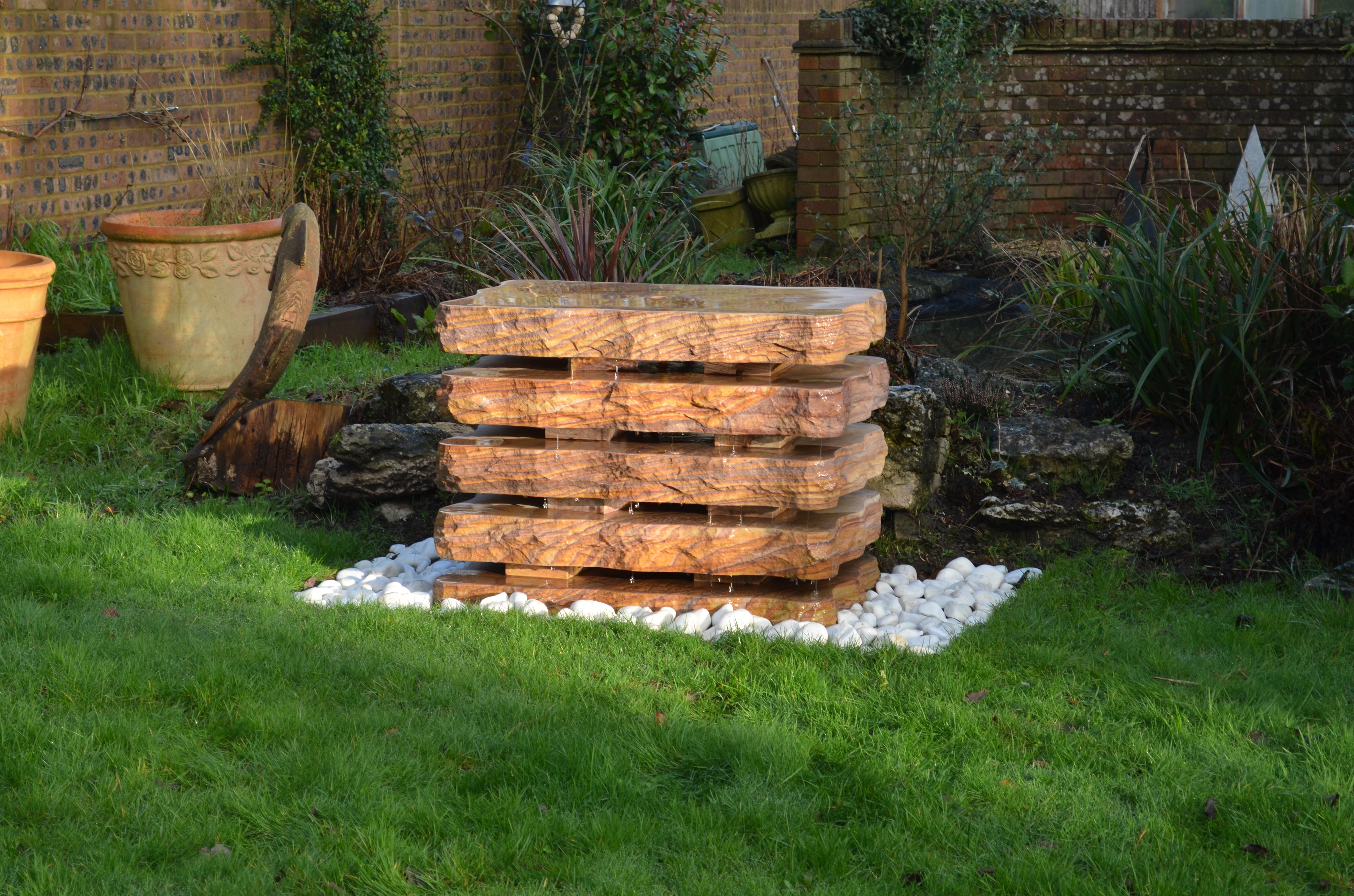 A beautiful water fountain made up of 5 separate blocks of Rainbow sandstone granite. The gaps between the blocks allow for a beautiful vision between the varying characters of the natural stone blocks, along with the timeless tranquillity of the water dripping between down the feature.